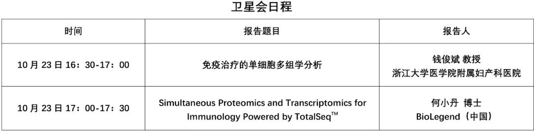 除了日常的展臺(tái)活動(dòng),我們誠(chéng)摯的邀請(qǐng)您10月23日下午16:30-17:30在腫瘤免疫與腫瘤免疫治療第七分會(huì)場(chǎng)參加我們的衛(wèi)星會(huì),達(dá)科為&BioLegend將為大家?guī)?lái)主題為“TotalSeq 技術(shù)助力免疫學(xué)研究及免疫治療的單細(xì)胞多組學(xué)分析”的衛(wèi)星會(huì),以下是會(huì)議日程安排,歡迎您準(zhǔn)時(shí)蒞臨,現(xiàn)場(chǎng)還有精美禮品,先到先得哦!