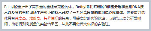 Bethyl特色重組單抗產品數據展示
