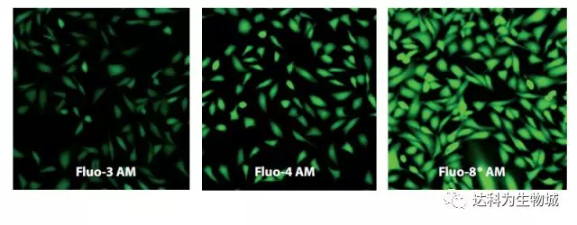 Fluo-3和Fluo-4是常用的可見光激發(fā)的Ca2+指示劑,然而Fluo-3AM和Fluo-4 在體內(nèi)結(jié)合鈣離子后的熒光強(qiáng)度不高,需要比較苛刻的loading condition來加強(qiáng)熒光強(qiáng)度。AAT Bioquest?Fluo-8改善了二者的loading condition和熒光強(qiáng)度問題,比如Fluo-8只需要在室溫孵育,而Fluo-3和Fluo-4需要37度水浴,另外Fluo-8的熒光強(qiáng)度是Fluo-4的兩倍,是Fluo-3的4倍,另外Fluo-8依舊保持Fluo-3和Fluo-4的通道。