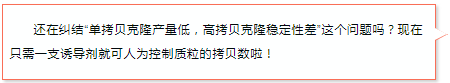 首先安利一下Epicentre的專利技術(shù)——CopyControl?克隆系統(tǒng),能夠讓您共享單拷貝和高拷貝的優(yōu)點。CopyControl?克隆:首先以單拷貝形式生長,單拷貝可以確保插入穩(wěn)定及成功克隆編碼基因序列;在需要的時候,通過誘導液誘導成高拷貝克隆,以便下游應用所需。這一系統(tǒng)可以用來構(gòu)建PCR克隆,對于BAC,F(xiàn)osmid文庫等大型質(zhì)粒格外有用。