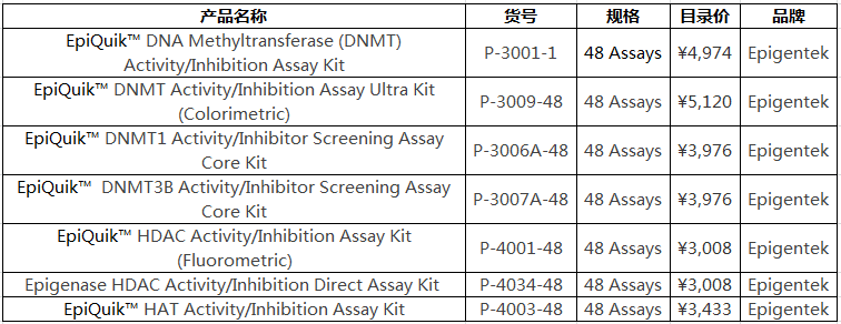 Epigentek還為您提供表觀遺傳相關(guān)的DNMT, HDAC和HAT核提取物檢測試劑盒。