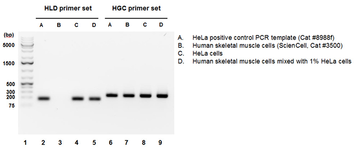 HeLa基因組DNAgDNA)檢測引物組分(HLD識別并擴增基因組中不存在于其他人類細胞的HeLa細胞特異性序列。