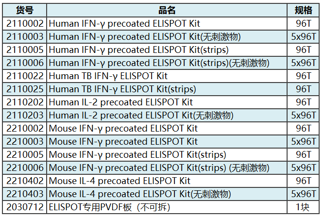 達優ELISPOT產品列表