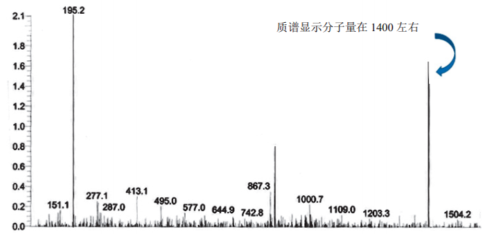 圖4. ND4的質(zhì)譜圖譜,顯示分子量在1400左右。