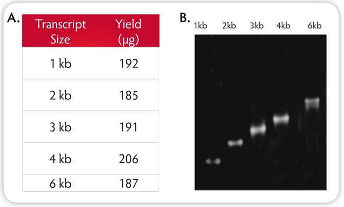 高產:從1μg DNA模板生產超過180μg RNA;