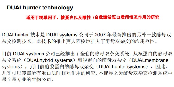 DUALhunter酵母雙雜交系統