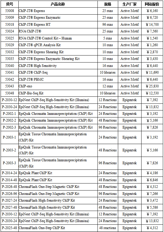 ChIP相關產(chǎn)品列表:
