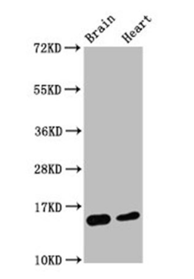圖1. 使用0.55 ug/ml Histone H3.1K4me2單克隆抗體(貨號:A68400)檢測小鼠腦和心臟組織Histone H3.1K4me2蛋白表達水平,檢測到目的蛋白大小15 KDa。